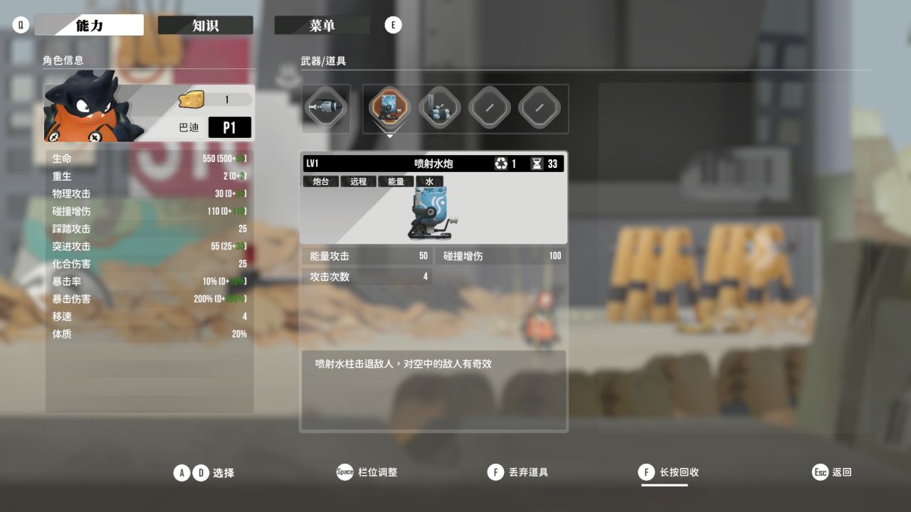 除了常规武器外,还有包括炸弹、火柴发射器等新奇的玩意。玩家最多可以装配四个,按下对应按键,或者事先选择一个,再点击E键即可快速使用。