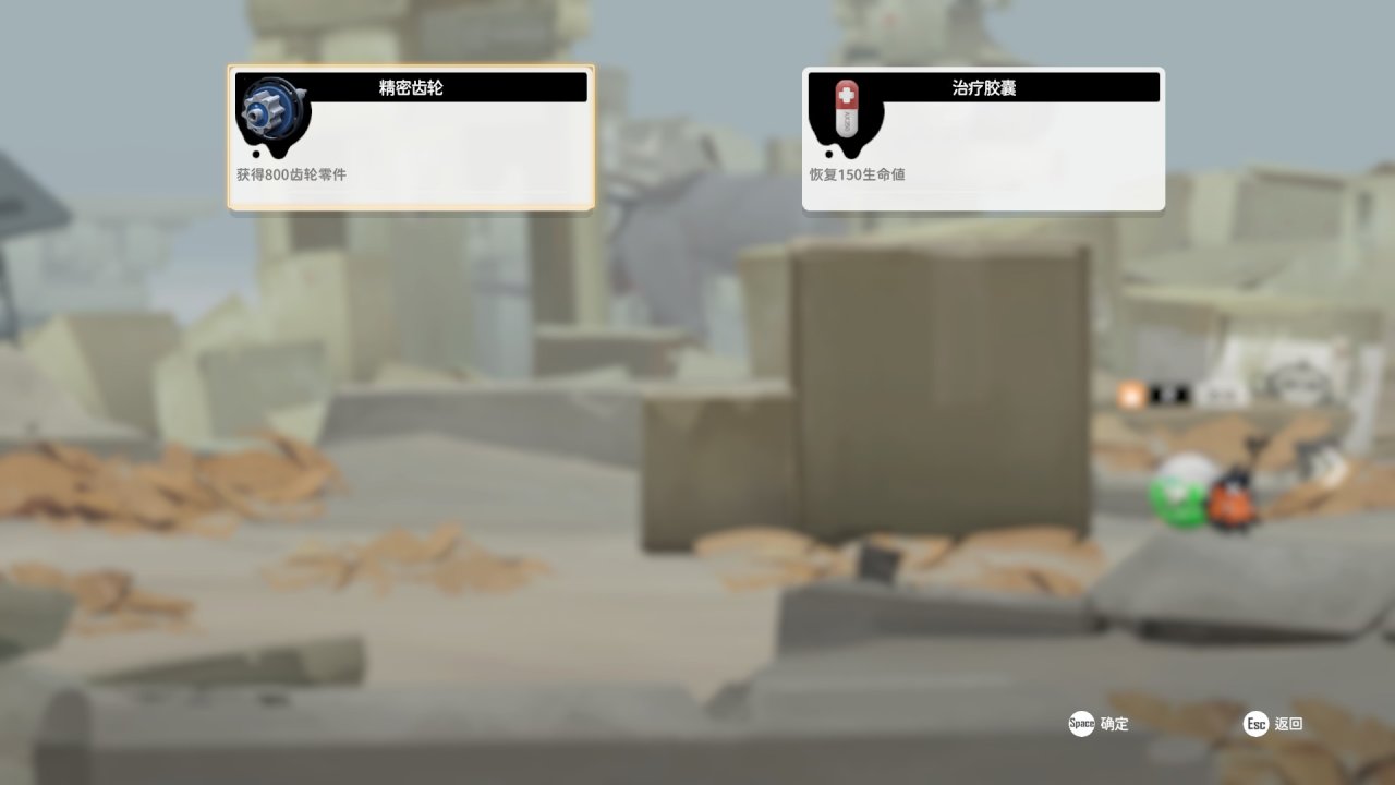 每通过一个战斗房间,玩家便能在两个奖励中选择一项。它们可能是零件,又或者是回复生命值,甚至是复活机会。