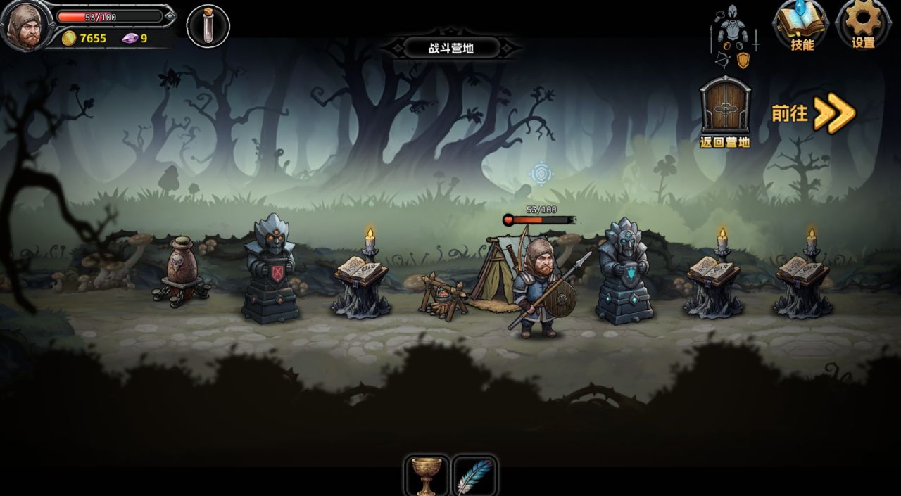 在此处,玩家可以进行休整、学习技能、获取BUFF等。周遭的瓶瓶罐罐啥的,大家也别忘记点一点。除了金币外,也可能会掉落装备。