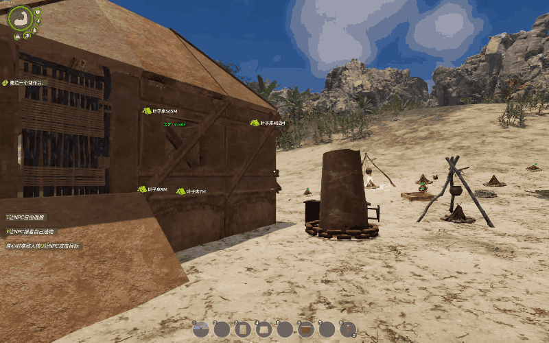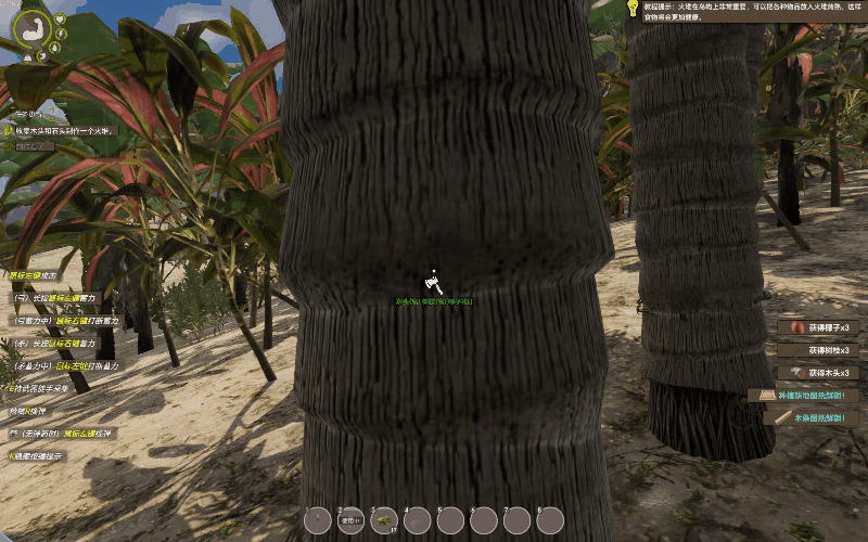 随后砍了几颗椰树获得了一些椰子还有木头树枝留着后续用。