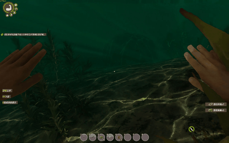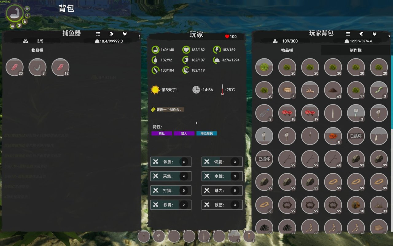 今天的目标是去找一些食物以备不时之需,大晴天就先下海捕个鱼🐟吧。