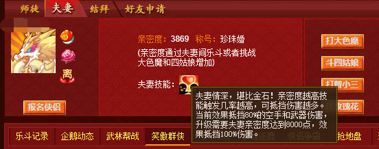 若是能尋得伴侶結個婚,你就有了“情比金堅”這一技能,夫妻二人從此舉案齊眉,對敵時自然更勝一籌;
