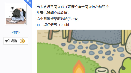 三年前,我在旅行青蛙貼吧裏注意到了喜歡“隨緣記錄蛙蛙近況”的小地瓜,她在貼吧的更新頻率就和遊戲本身一樣佛系,每隔幾個月,她便會隨機發布一次動態,有時是青蛙歸來,有時是小草冒出了新芽,每次都只有幾句話和一些記錄狀態的圖片:
