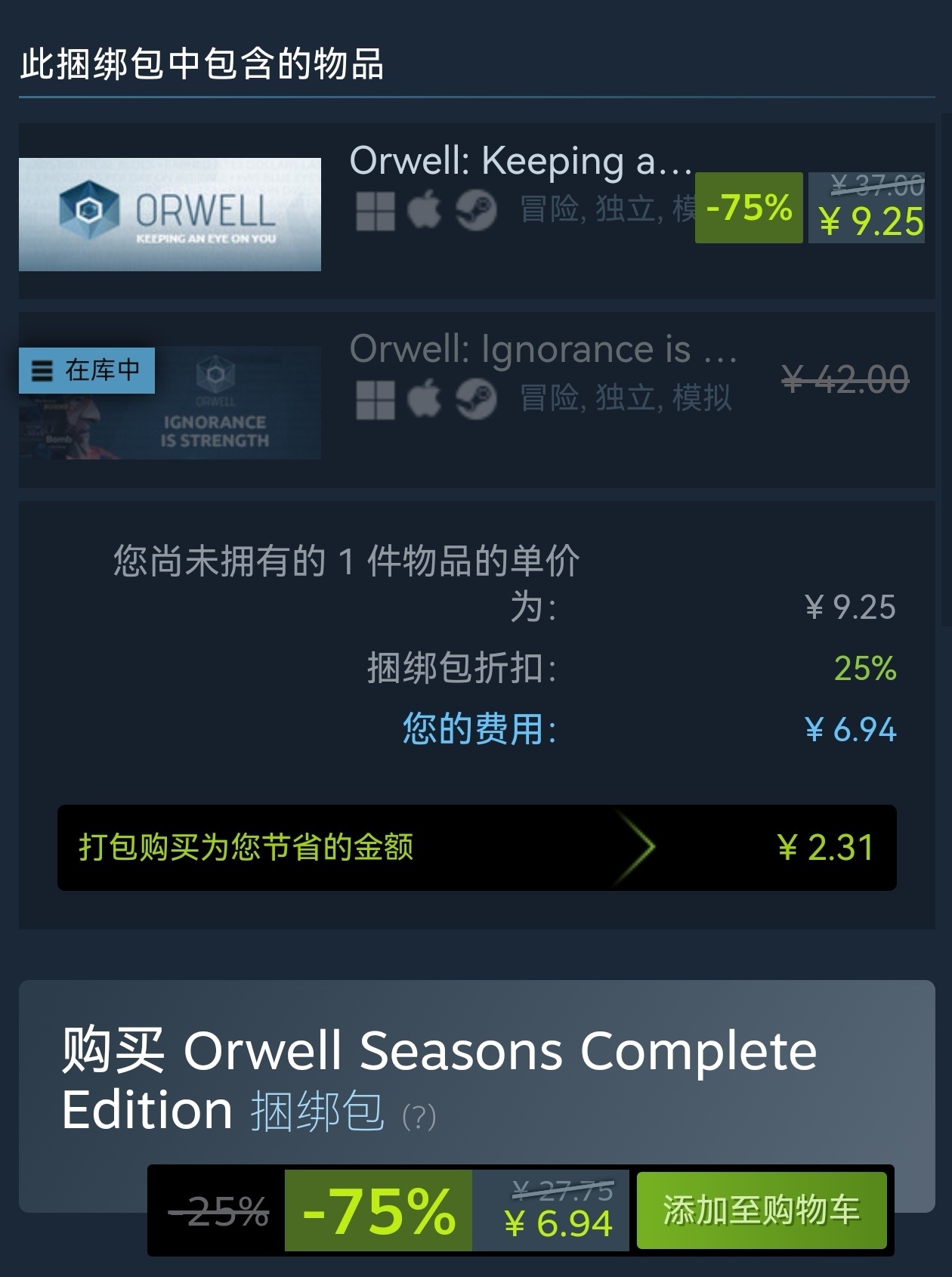 如果你有《奧威爾:無知即力量》,可以用更便宜的價格買到。