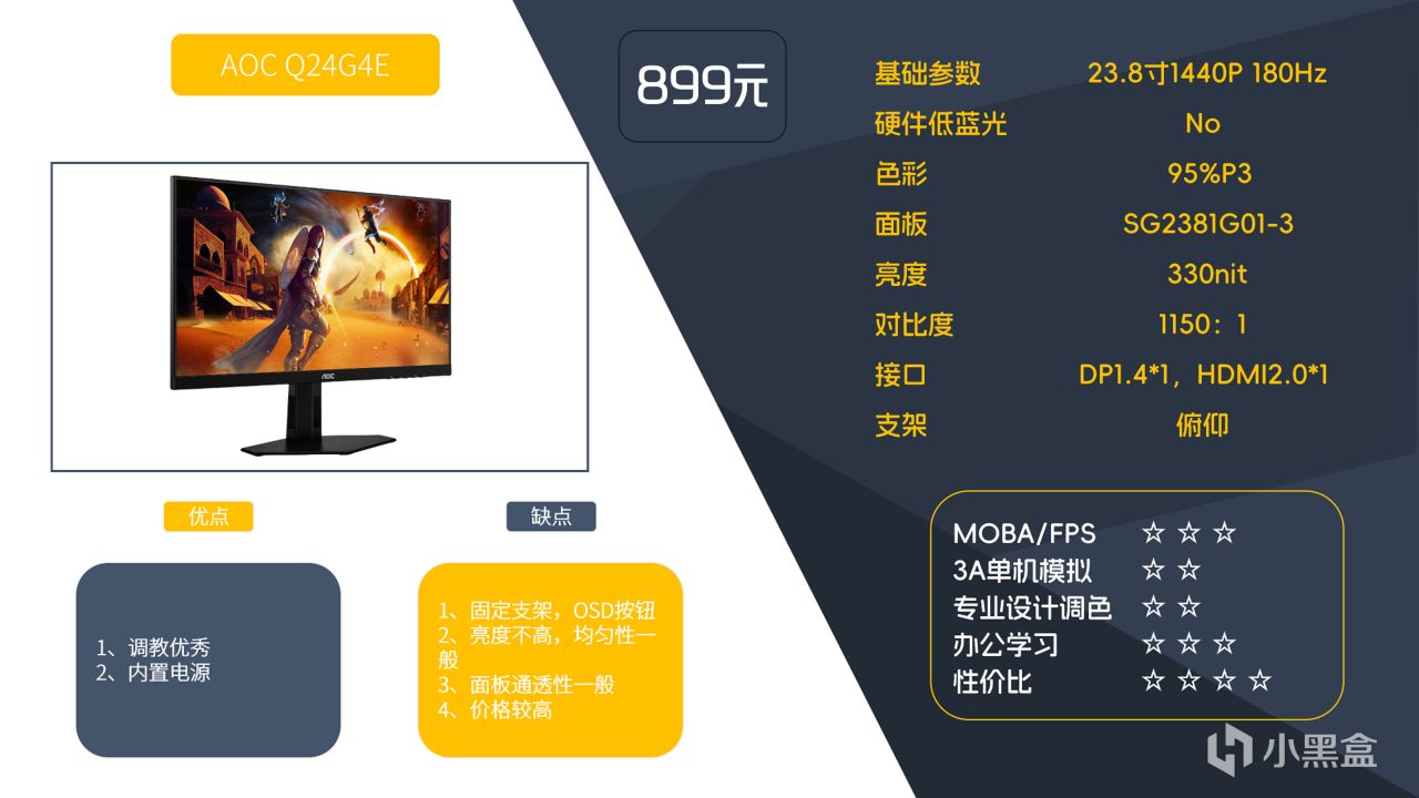 由于AOC这台机器略高的价格,在意性价比的用户呢,也可以看看KTC,SANC或者HKC之类的机器。比如HKC的G24H2经典款,同样的面板,参数上表现也很棒,色彩调教到位,对付正常的游戏需求毫无压力。不过这类入门产品的通病,还是背光均匀性的表现上欠缺,只能靠摸奖。