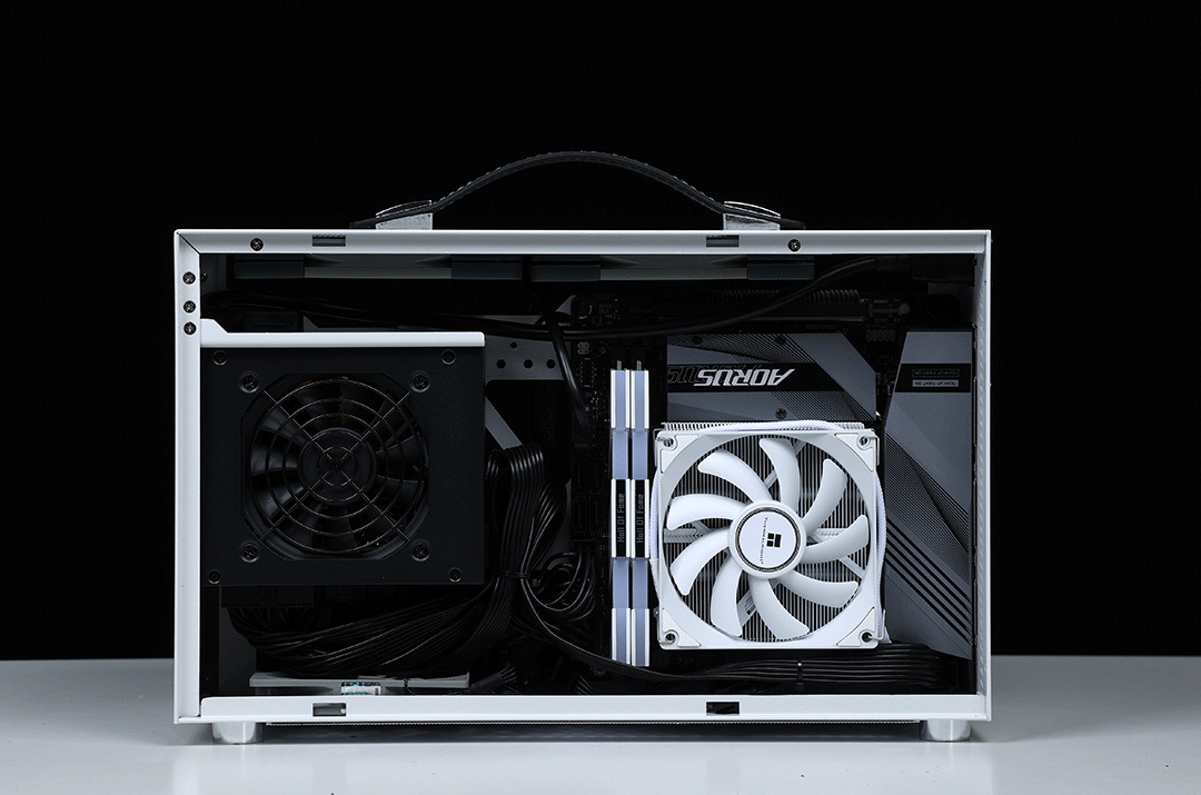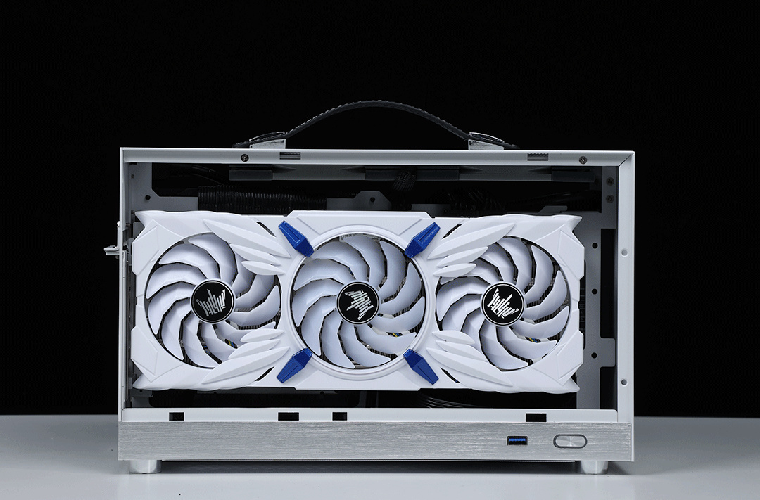 直接上配置:i5-12400盒裝處理器、技嘉迷你雕B660I主板、影馳RTX3080 HOF Pro顯卡、HOF Pro D4-4000Mhz 16G*2內存、HOF Pro30 2T M.2 固態硬盤、閃鱗S400 便攜式ITX手提機箱、利民AXP90-X53WHITE 下壓式風冷散熱器、Almordor 750 SFX電源、利民TL-C12015薄扇*2、利民TL-9015薄扇*1…
