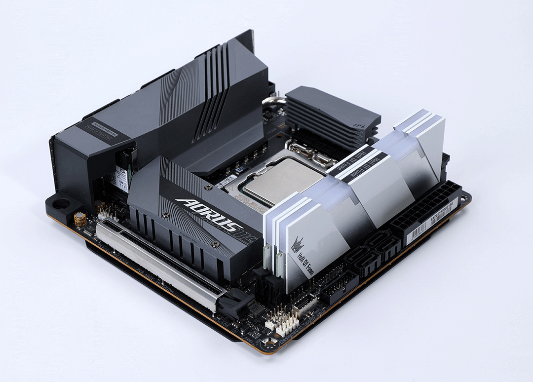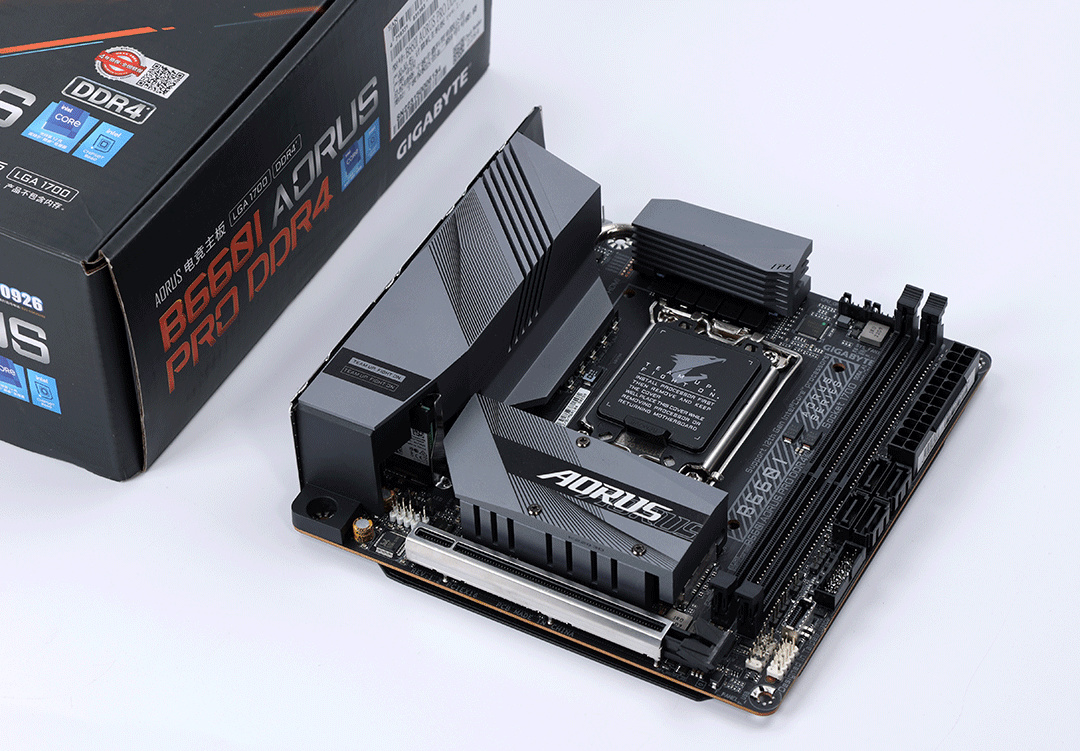 B660I段位的主板其實不多,御三家華碩只有D5版本,微星直接缺席,所以選擇了一塊技嘉迷你雕B660I AORUS PRO DDR4主板。主板採用8+1+1相數字供電,外接8pin處理器供電,再加上10層優質純銅電路板,可以說是非常能打的存在;