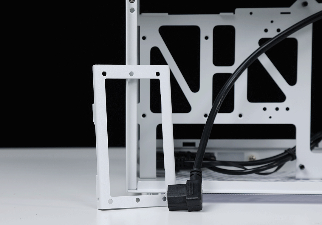 機箱支持安裝SFX與SFX-L規格的電源。機箱內有三個2.5寸硬盤孔位,也支持安裝3.5寸硬盤(此時顯卡限長225mm)。