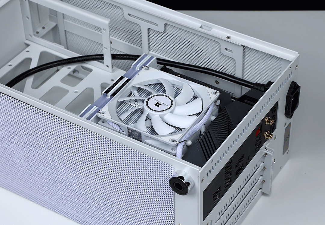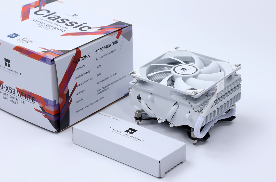 爲了散熱委屈顯卡這種事,我肯定幹不出來,所以老老實實安排下壓式風冷,利民AXP90-X53 WH下壓式散熱器,散熱器三圍94.5*95*54mm,既能搞定12400的散熱需求,同樣也沒有安裝兼容性的煩惱。