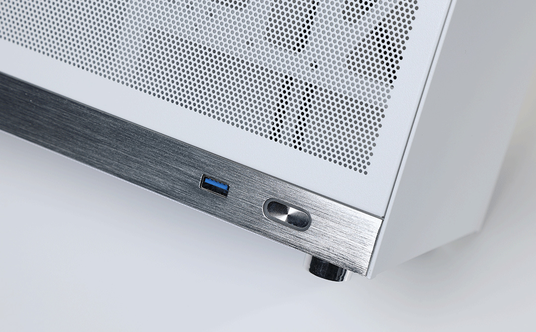 I/O面板位於機箱側面,含開機鍵、USB 3.0Type-A口