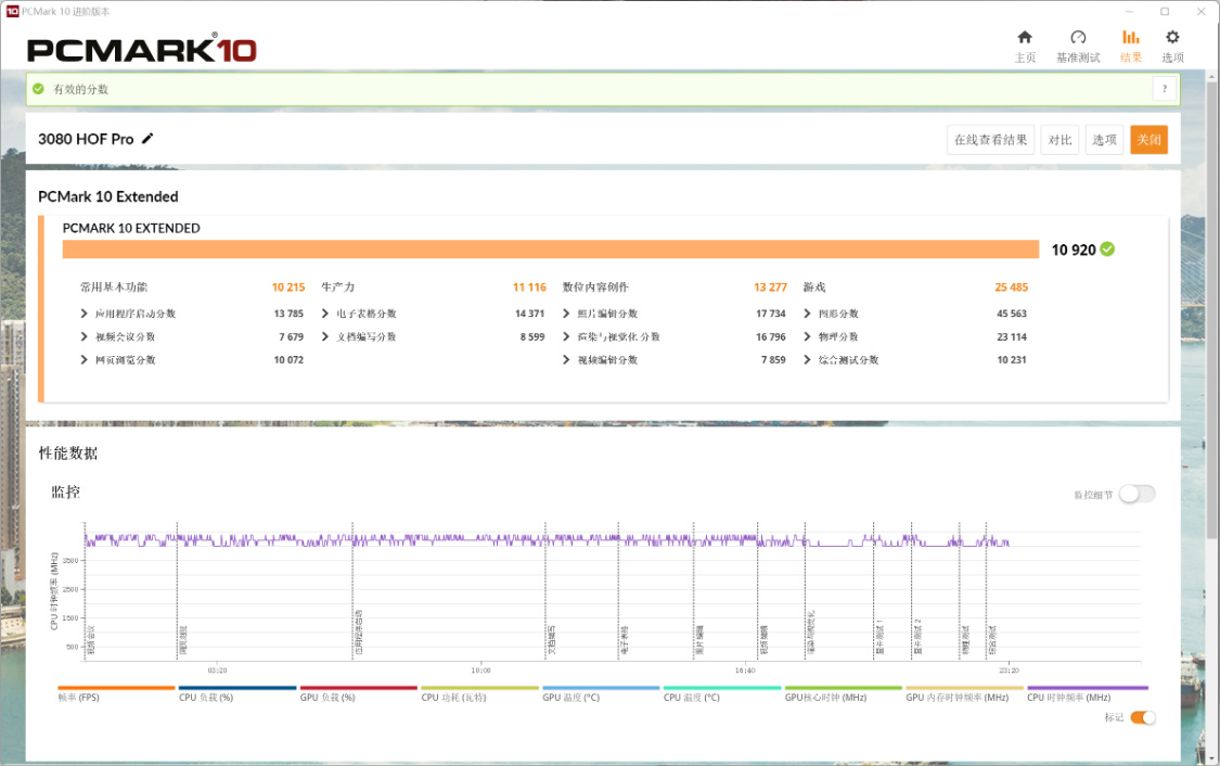 PC Mark Extracted整機測試,整機得分10920分,常用基本功能得分10215分,生產力得分11116分,數位內容創作得分13277分,遊戲得分25485分;
