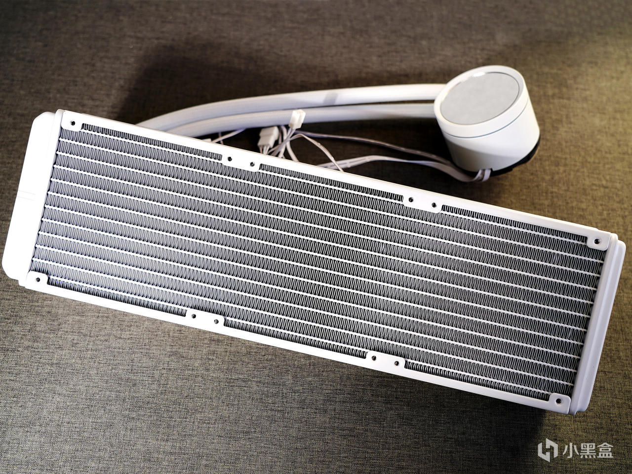 ▼水冷排的水道有12條,採用密集波狀鰭片,進行了白化處理,做工細節不錯。
