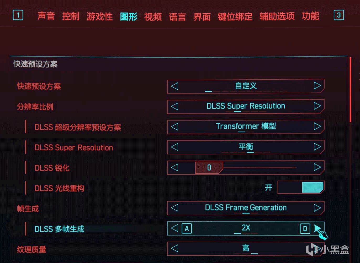 DLSS 2就是深度學習超採樣,通過降低遊戲渲染分辨率,然後利用AI算法填充細節像素,最終輸出接近高分辨率下的原生渲染效。英偉達更新了Transformer架構,相比卷積神經網絡(CNN)架構有更好的畫質。經我測試,使用Transformer的幀數要比CNN低了不到5%,也是爲了更好畫質要付出的一點點代價。