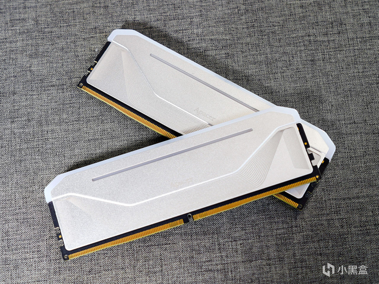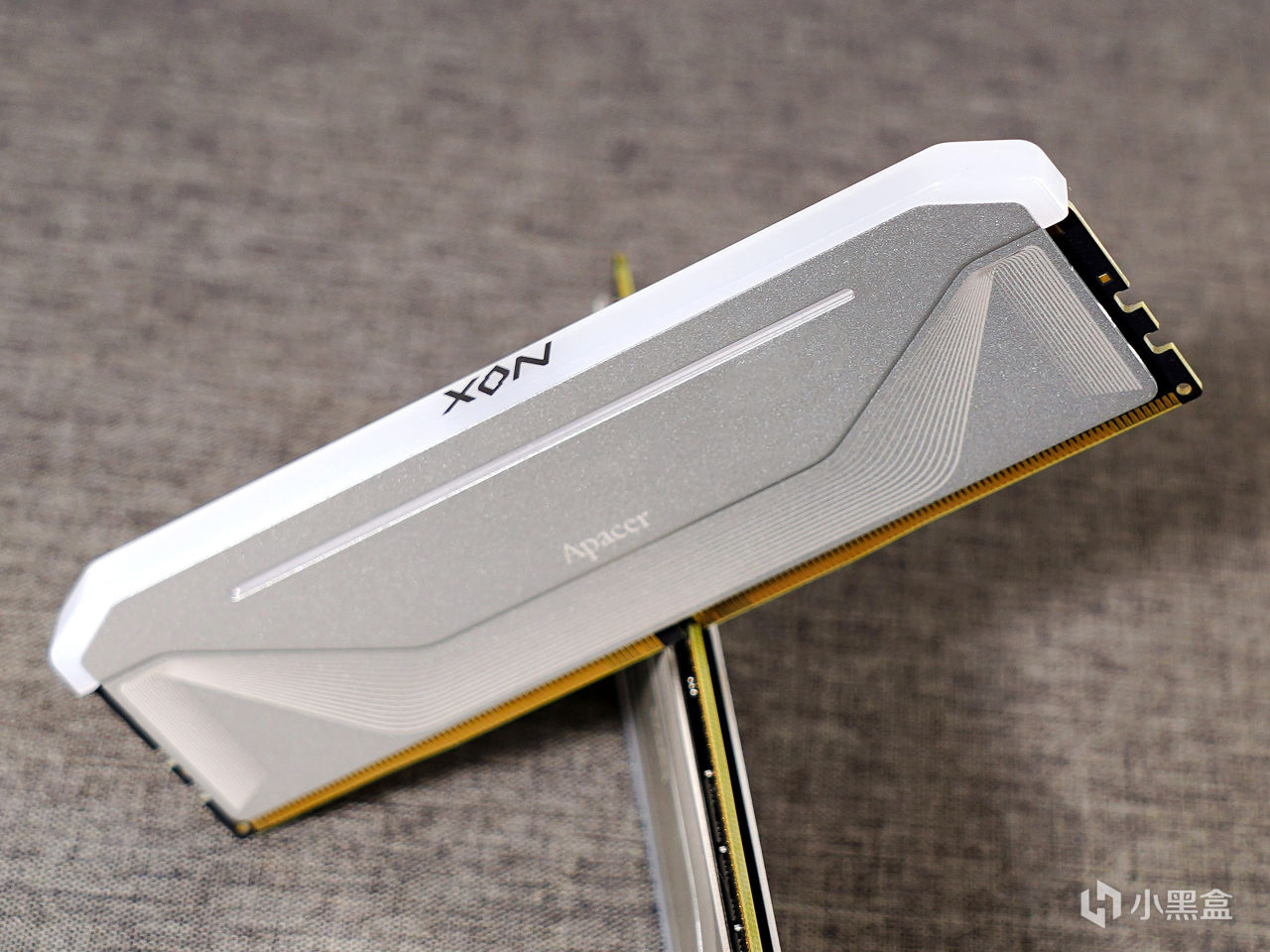 ▼馬甲正中有Apacer標識,靠下位置有紋理裝飾,設計簡約,質感很好,內存顆粒爲海力士A-DIE,XMP頻率爲7600MT/s,時序C36-48-48-84。支持Intel的XMP3.0 以及AMD的EXPO技術。