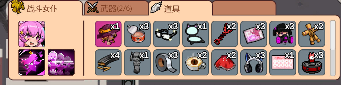 四款女仆,总有一款能够戳中你。她们拥有不同的主被动技能和初始武器池,构筑方向也有一定的差异。