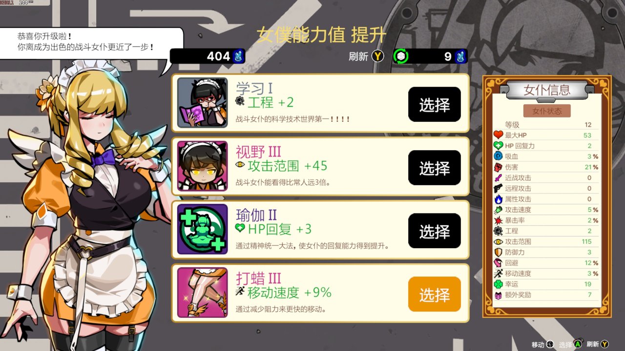 每个女仆还拥有独特的局外养成树,涵盖最大生命值、经验金币获取数和伤害加成等各方面。