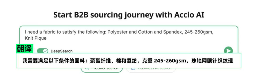 在此之前, B2B 跨境採購的搜索入口,往往是在 Google 等主流搜索引擎上。但阿里國際站上面,多的是各種供應商資源。現在做了這麼個 AI 搜索引擎,正好可以把供需更精準地匹配上。