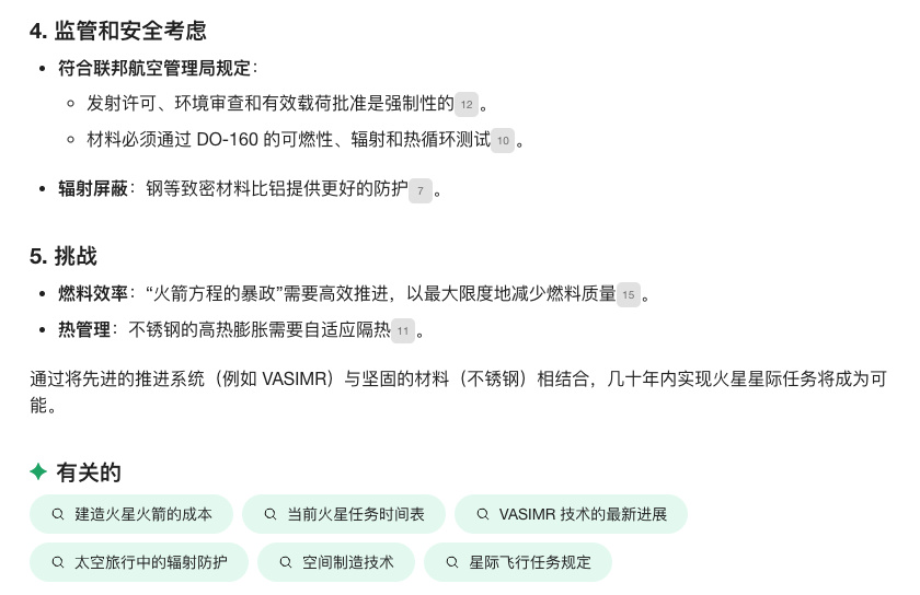 不過,我本來是沒太指望 AI 能給我提出什麼可行性建議的,畢竟去火星這事兒,說小也不小,怎麼着也得是馬斯克這種級別的大佬來操心纔行。
