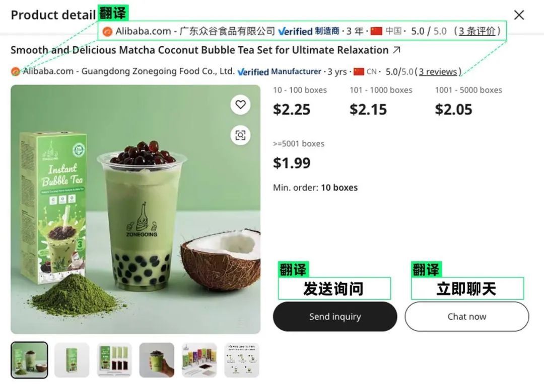 還有什麼可生物降解的杯子、吸管,開店需要的移動推車,甚至是珍珠和椰子水,阿里國際站上優質、靠譜的供應商,妥妥地都給找了出來。