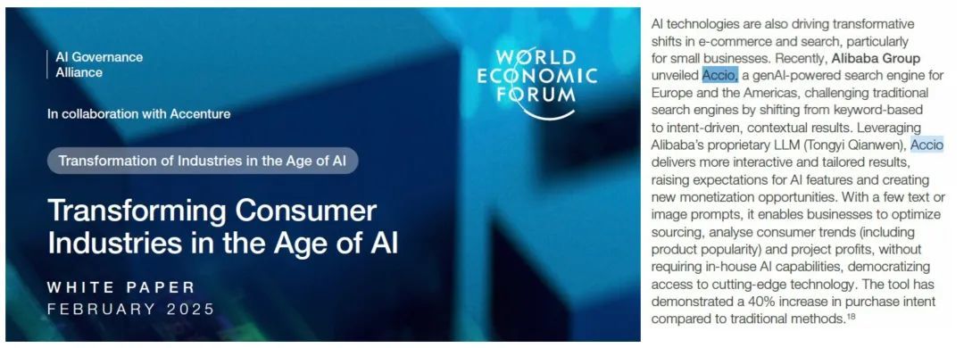 這幾天, Accio 還登上了世界經濟論壇的白皮書,被認爲是 AI 改變產業的代表性案例。