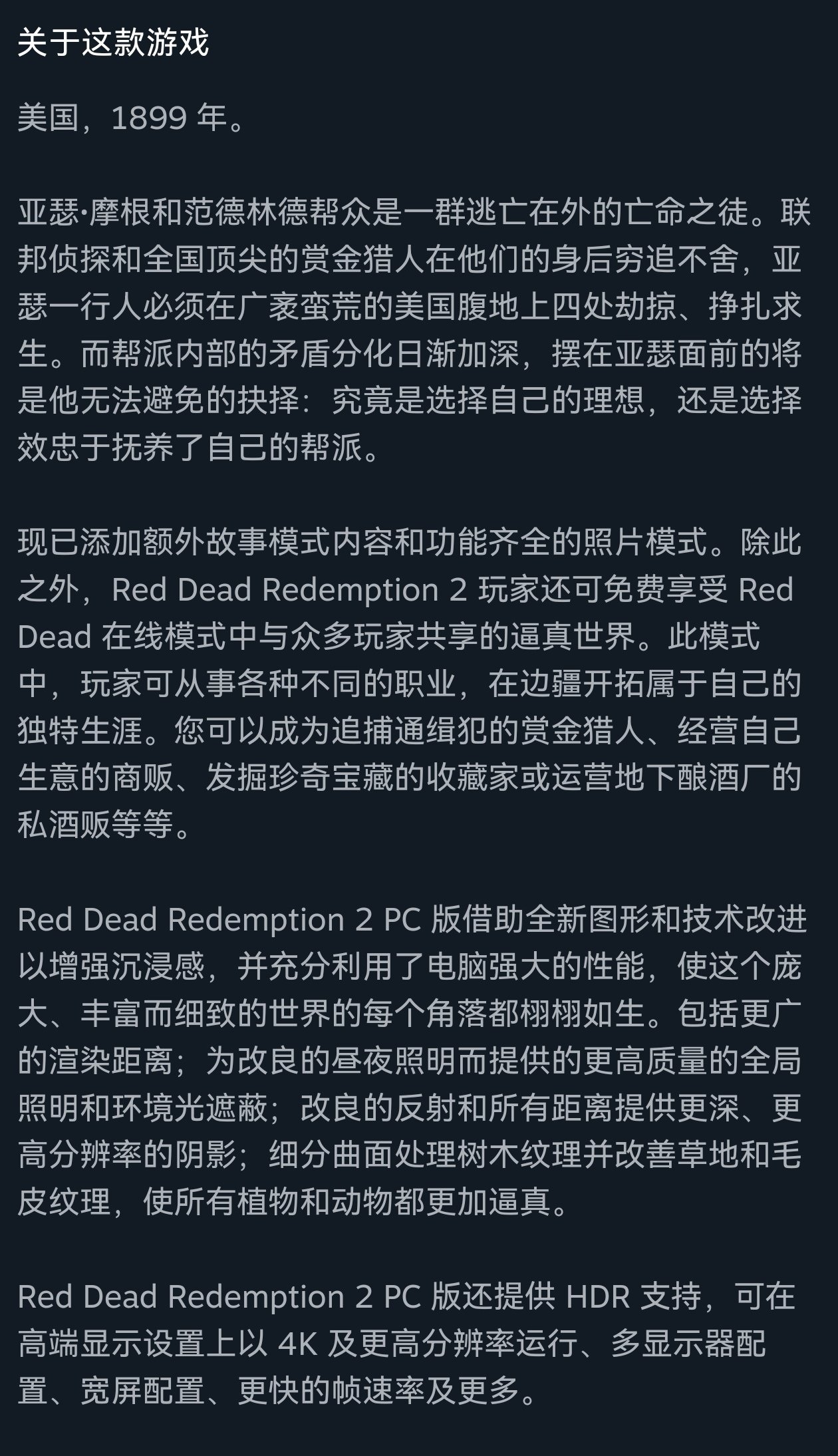 大家好,今天黑盒商城突然來了個狠的,就是給遊戲廠商R星旗下的《荒野大鏢客:救贖2》開啓了史低促銷,可以說相當狠了,上次未入的盒友可以入了,這個遊戲不僅塑造了一個令人動容的角色,還塑造了一個栩栩如生的世界。