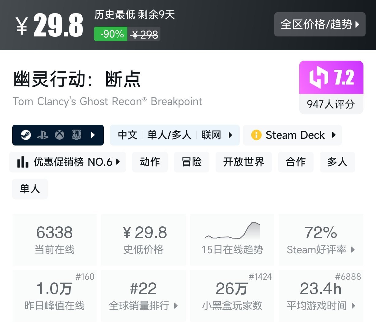 hello,大家好!今天给大家整理了25款近期一折及以下以下史低与新史低游戏汇总,最近游戏荒的小伙伴可以看看有没有自己喜欢的游戏,有喜欢的小伙伴不要错过,抓紧入手吧。