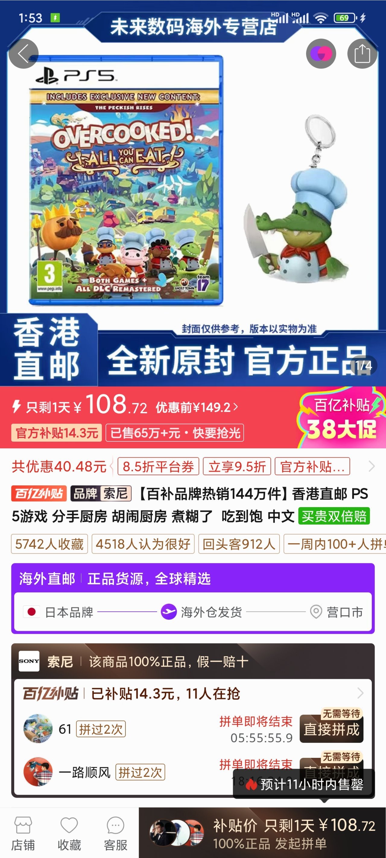 最後就是小體量遊戲胡鬧廚房大批量鋪貨,價格也來到了108帶特典,大規模鋪貨小規模降價一般就是要降價。