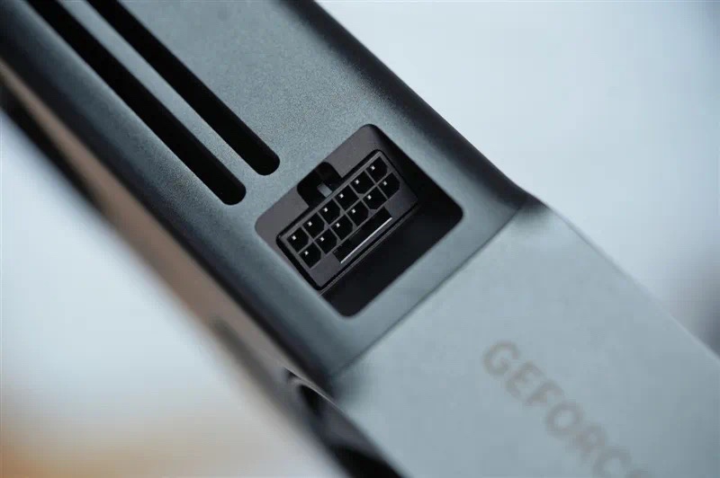 RTX 5070 FE的整板功率爲250W,在顯卡頂部搭載了16Pin供電接口,而且在頂部和底部都設計了凹槽進行點綴和增強卡身物理強度,美感與實用性並存。
