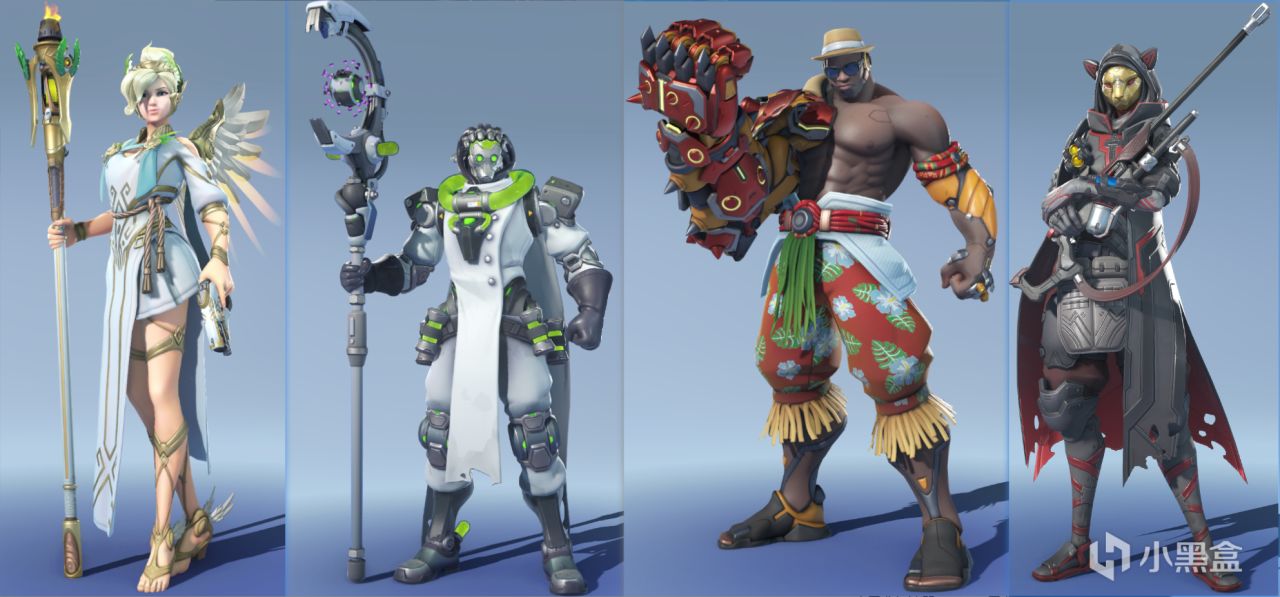 S1 賽博朋克:賽博惡靈——源氏,護林員——麥克雷,長空百夫長——法老之鷹,巫女——天使,突擊隊員——索傑恩,猛獸獵手——渣客女王,不死火鳥——霧子,特種戰術——溫斯頓,電子舞曲——Dva
