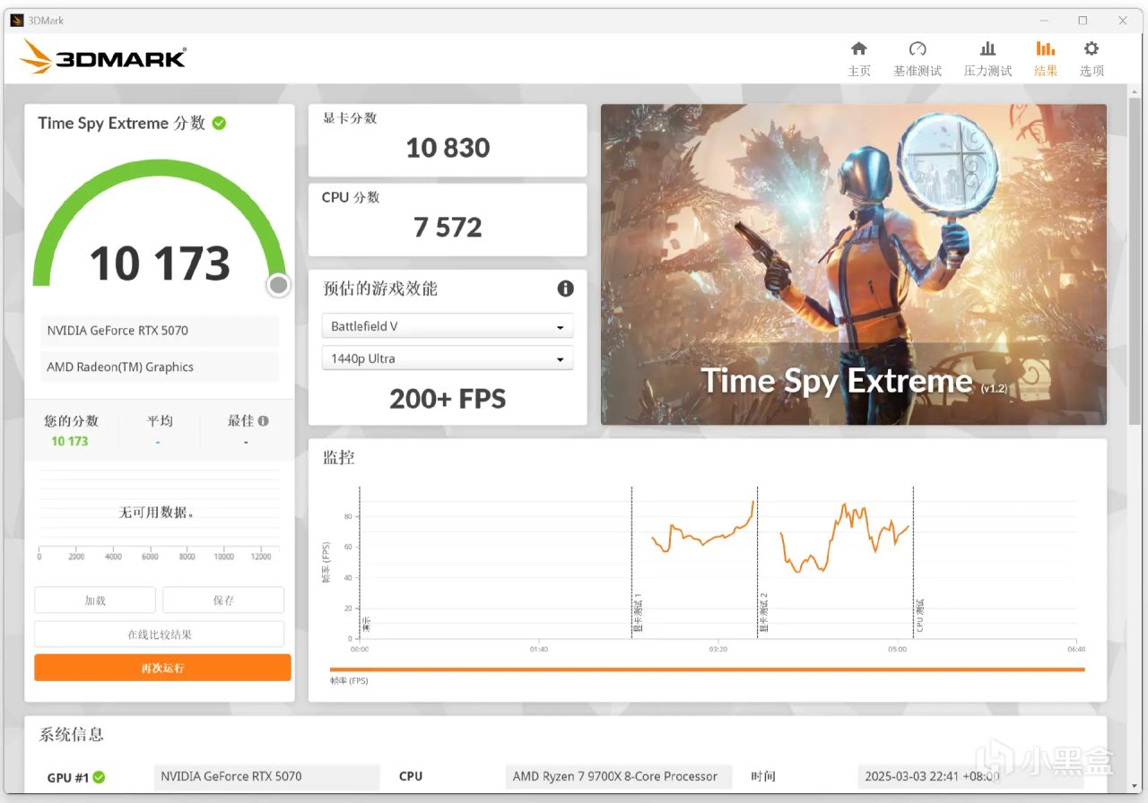 Time Spy Extreme測試,萬麗星雲GeForce RTX 5070的分數爲10173,其中顯卡分數爲10830。