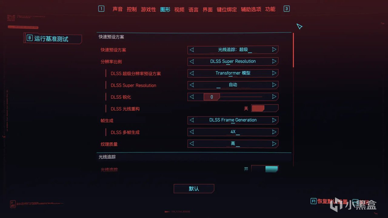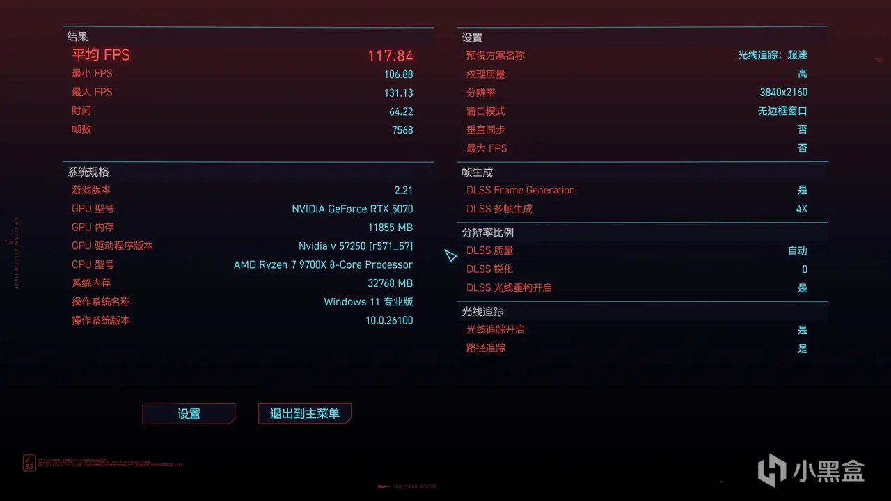 該遊戲目前一直宣傳支持DLSS 4.0,但更新一直沒出來。所以目前實測在4K分辨率+影視級畫面設置+超採樣清晰度50+全景光線追蹤高+DLSS 3.0情況下,遊戲的平均幀數爲58FPS。