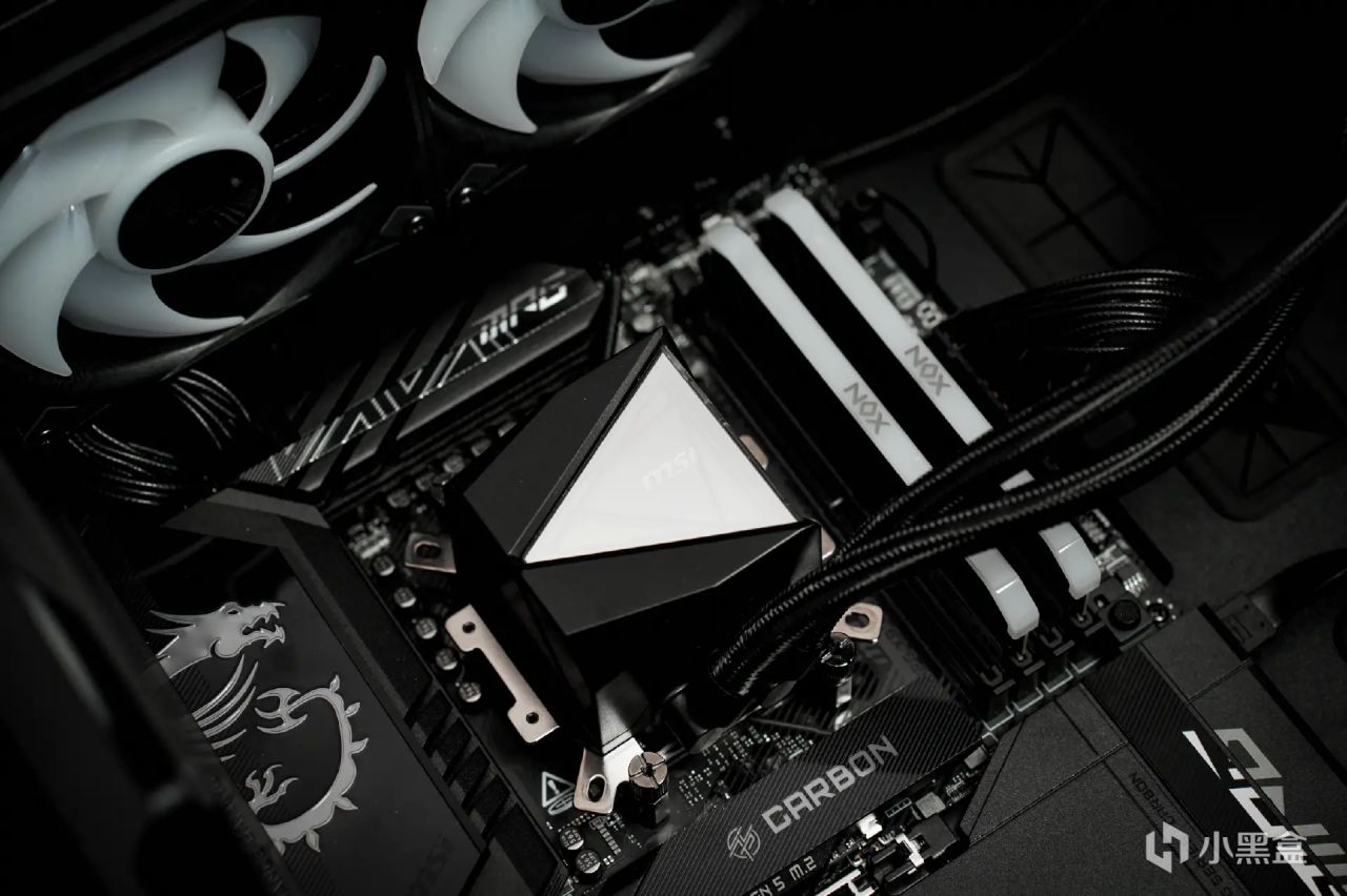 散熱器方面我用的是微星MAG CORELIQUID I360,雖然9700X的發熱並不大,但爲了整機的效果,我還是選擇了水冷。該散熱器最大的優點就是使用了兼容性極高的多功能扣具,無論是AMD還是INTEL平臺都可以不切換扣具,直接安裝;且對應最新的intel酷睿Ultra 200系平臺還推出了偏移扣具,進一步降低散熱。
