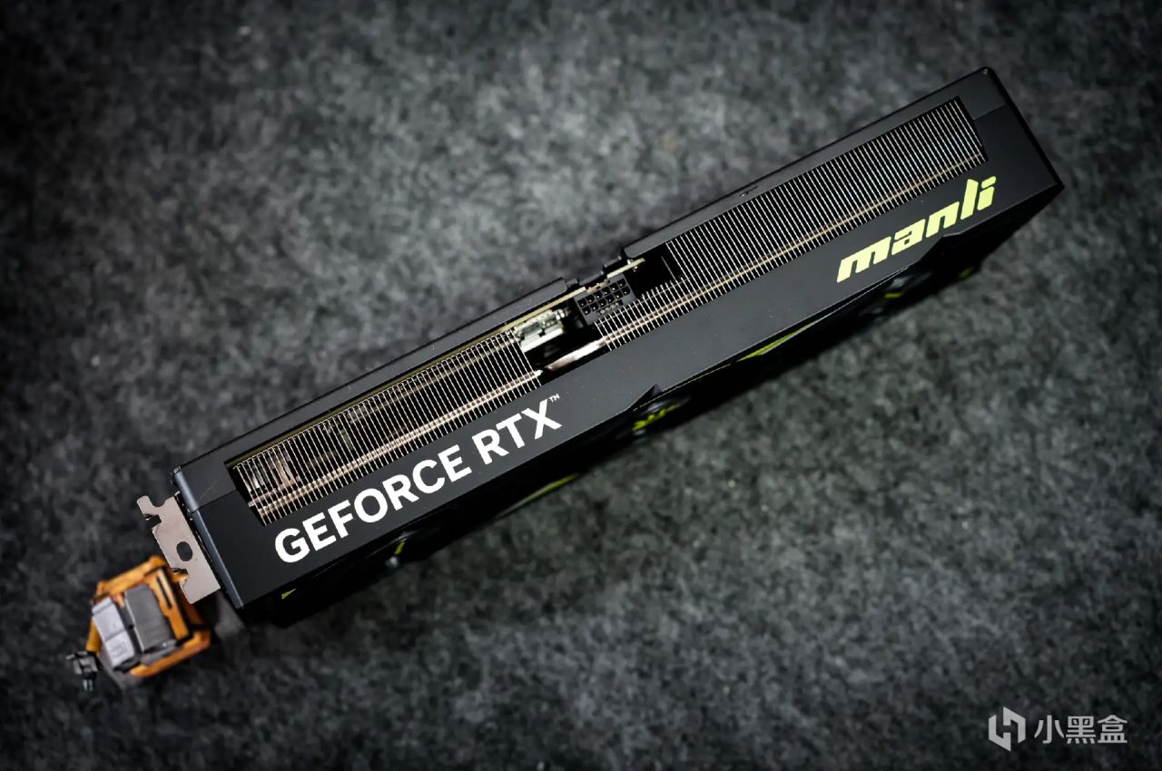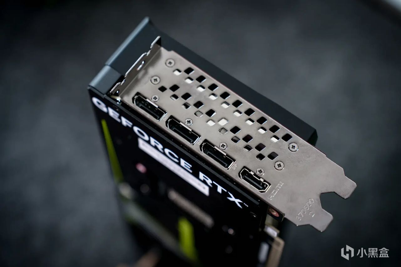 而背面則是採用了抗變形能力更強的全尺寸邊緣折彎金屬背板,使得顯卡的整個抗扭剛度要比一般的顯卡強上不少。當然,金屬背板的尾部也少不了鏤空的設計,進一步增強顯卡的整體散熱表現。