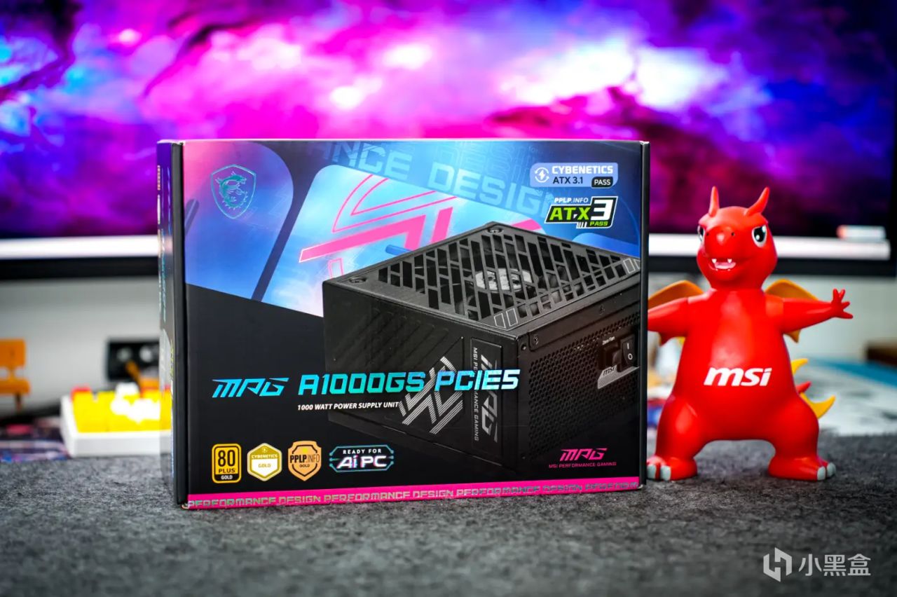 電源方面,這次我用的是微星剛剛發佈的MPG A1000GS PCIE5電源。該電源採用了ATX 3.1 和 PCIe 5.1規範,額定功率爲1000W,對比之前的版本,不但提升了瞬時負載,同時也升級了模組線材,無論是走線的便利性還是美觀性都更高。