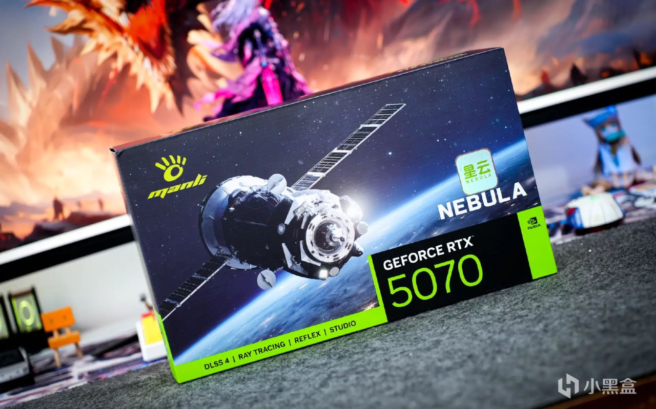 在外包裝的設計上,萬麗星雲GeForce RTX 5070直接是用空間站配上浩瀚的星空作爲背景,而右側的NEBULA配合帶鐳射的星雲字眼則標明瞭該顯卡所屬的系列。