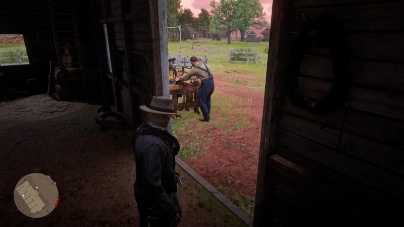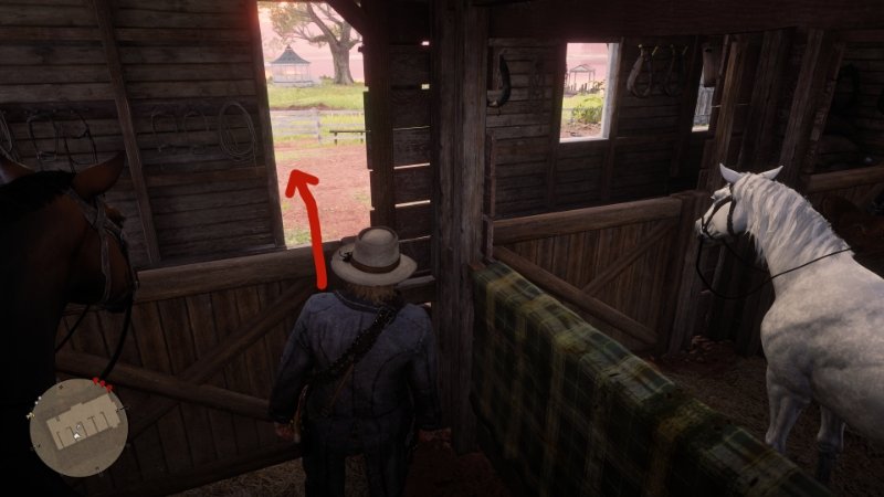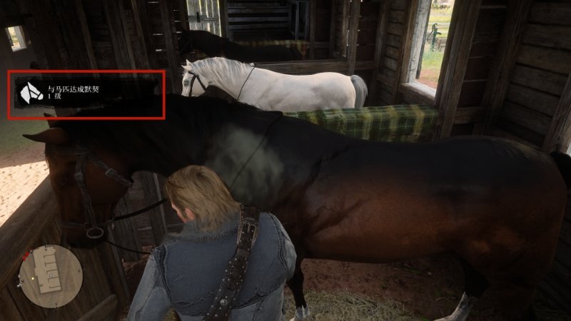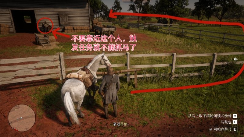 到馬廄前面把馬栓住,從側面繞到馬廄後面,離馬倌遠點,別觸發任務。