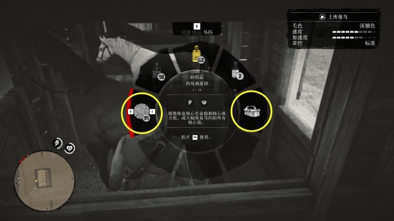 打開地圖看到臨時馬在這裏,過去按H讓馬跑過來。馬肉大餐任務又刷新了,可以重新做抓黑白阿拉伯馬。