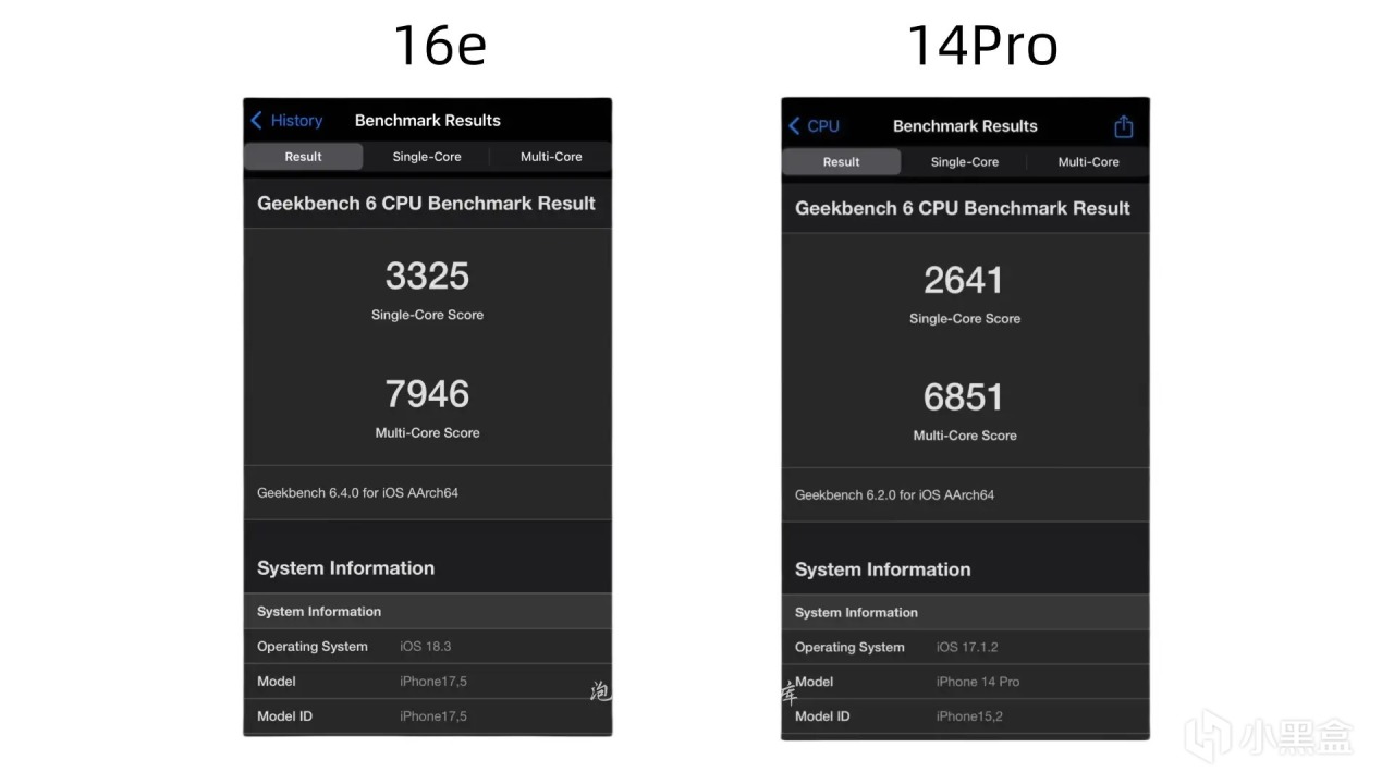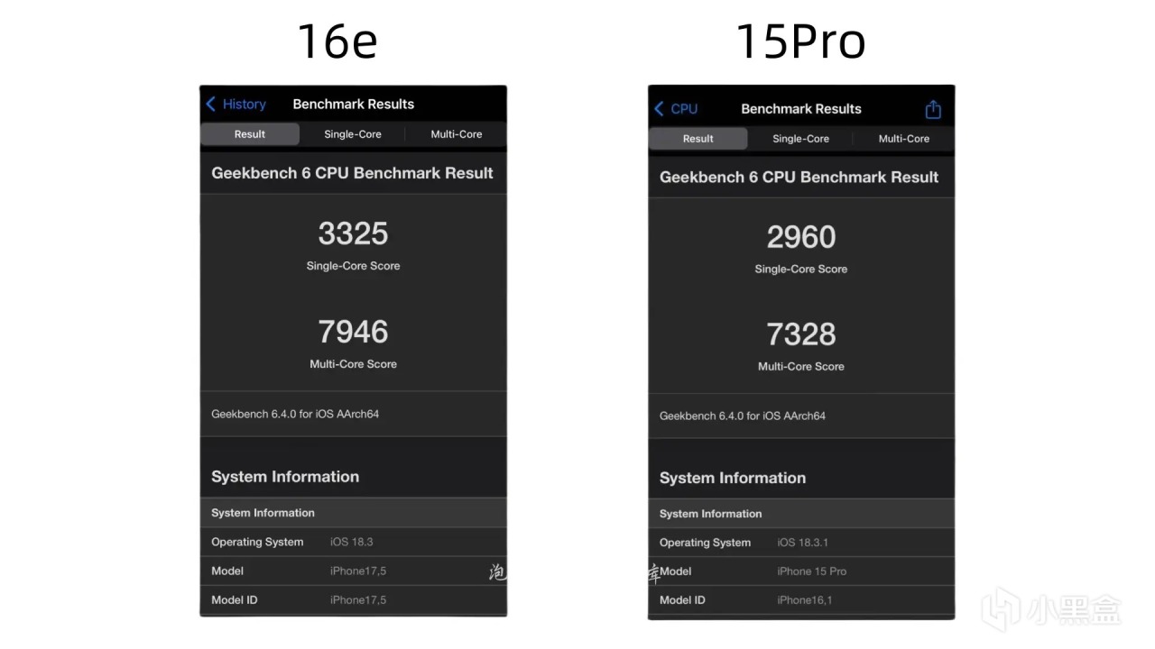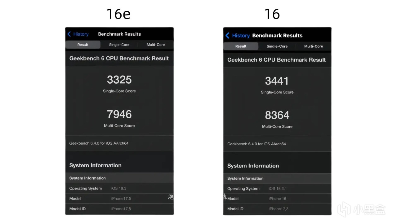 16e內部搭載的A18芯片減少了一顆GPU核心,即從iPhone16的5核GPU減爲4核GPU,在遊戲上相比功耗會高,但相比A17芯片5核GPU的整體圖形處理能力依然有20%左右的優勢。在3DMark等圖形性能測試軟件中,和A18Pro比弱了34%左右(看到畸變了嗎?)