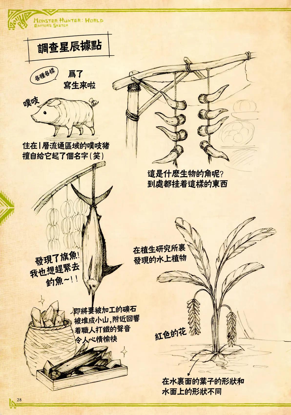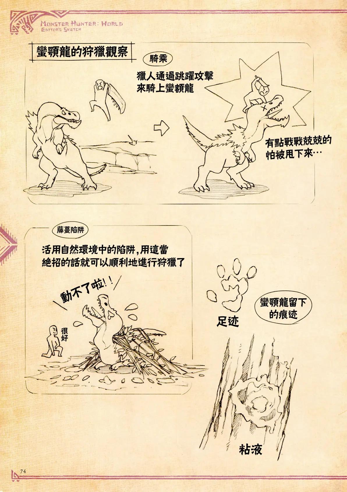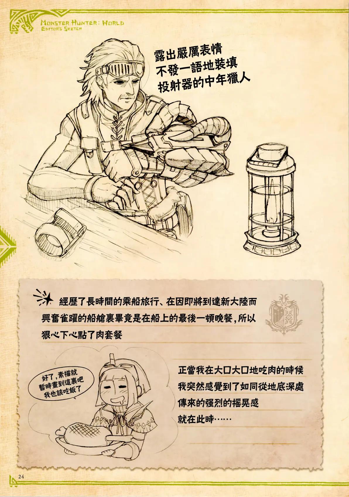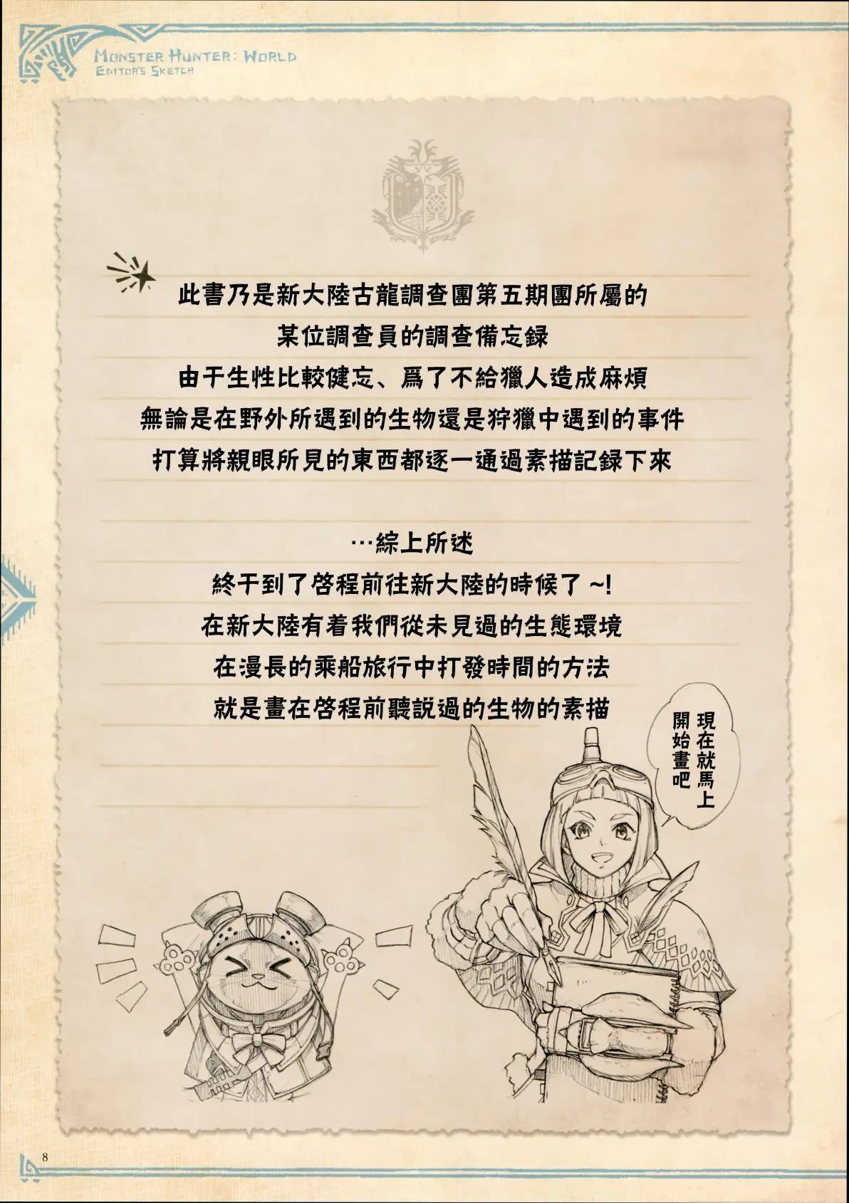 本書有別於普通的遊戲設定集,採用前線獵人的視角,在遵從《怪物獵人 世界》背景設定的基礎上,通過旅行日記的形式描繪出”新大陸“多姿多彩的生態,爲讀者展現出充滿生活氣息的“獵人世界”。