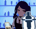 當你走進這家叫做Vallhalla的名字怪異的酒吧,你會看到吧檯後面站着紫黑頭髮雙馬尾的酷girl調酒師Jill,她一邊放着合成器音樂一邊問你今天想來點什麼。