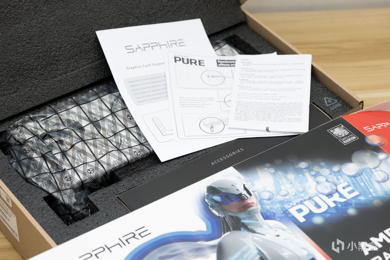 首先開箱看看外觀,這一次首發測評的是AMD一直以來的深度合作的AIB藍寶石出品的PURE非公版。藍寶石這一代改動了顯卡名稱的設計,PURE的定位類似於上一代的白金版,高於Pulse但是略遜於Nitro+