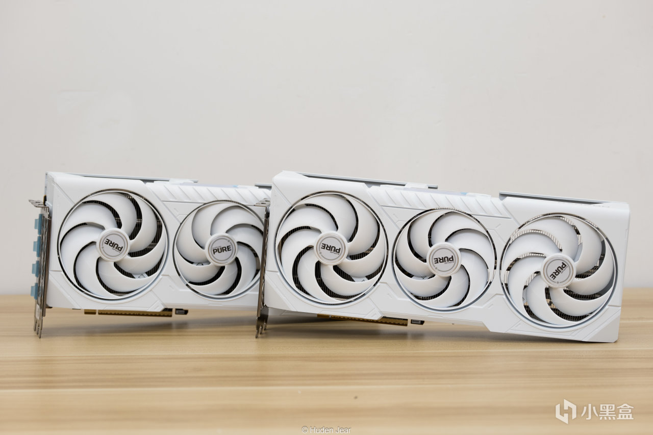兩張卡都是藍寶石的Pure OC版,外觀純白色,造型非常好看,而且側邊還有一個RGB LOGO,顏值這塊兒藍寶石的審美還是比較在線的