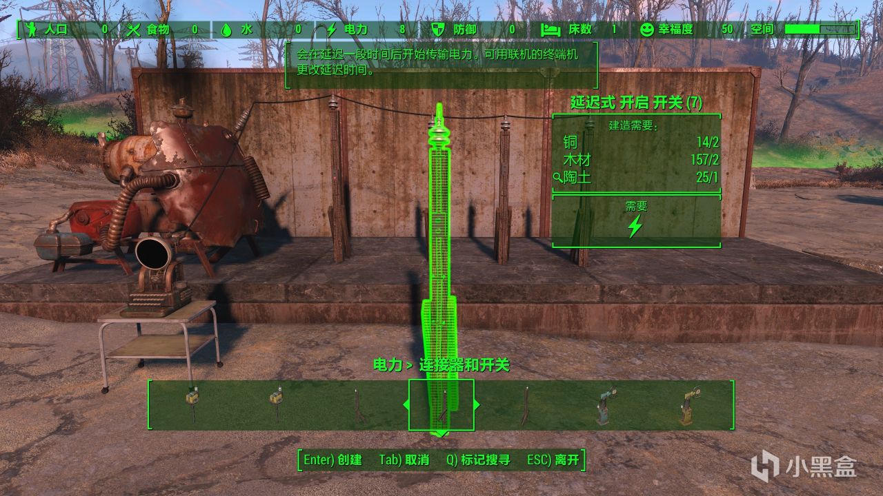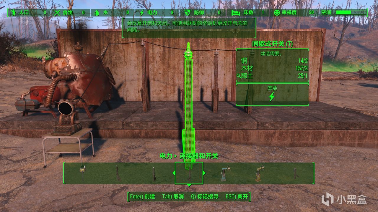灯光装饰可以增强废土聚落的夜晚氛围感,个人感觉原版的灯光装饰据点多少有点单调。所以我自己琢磨了一种用特殊开关和灯箱来制作动态灯光装饰。