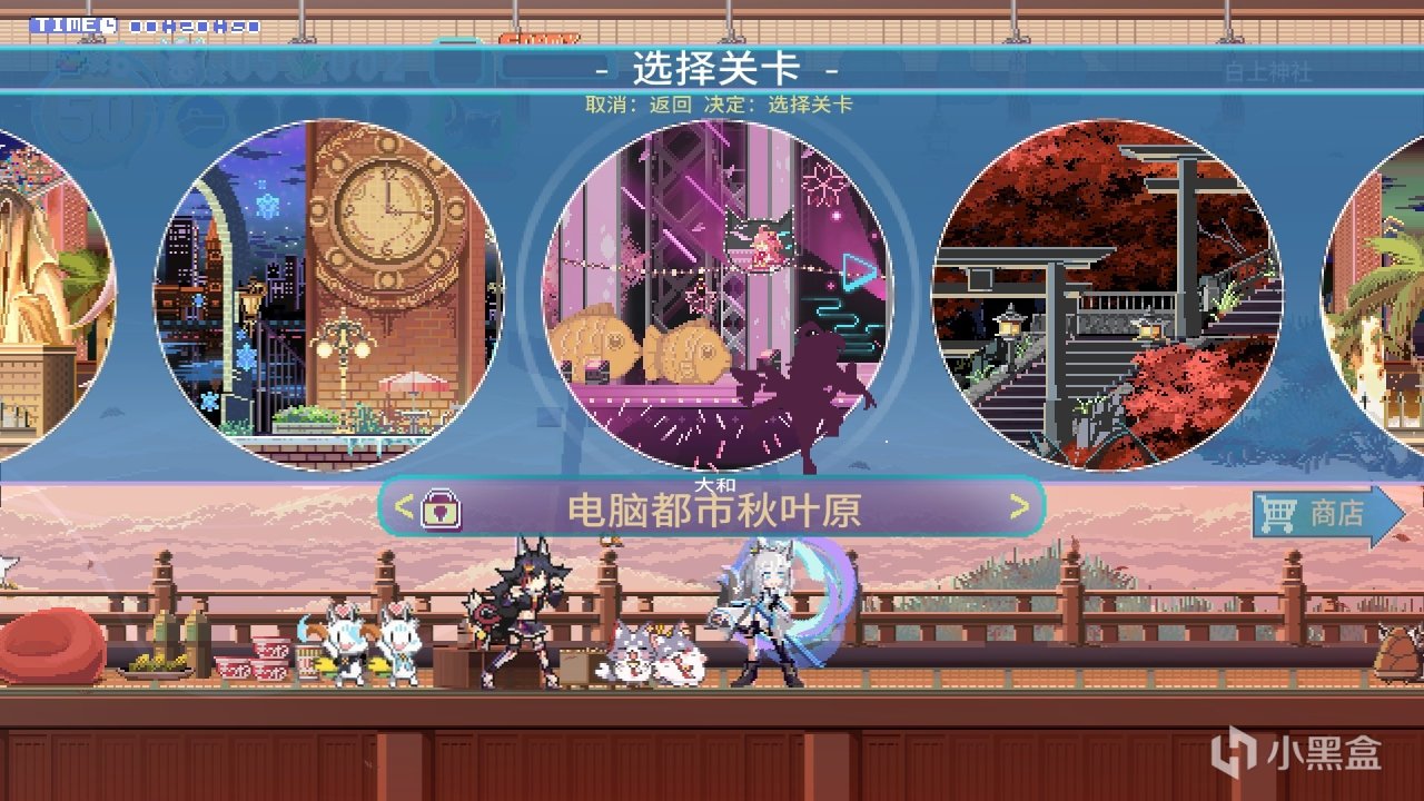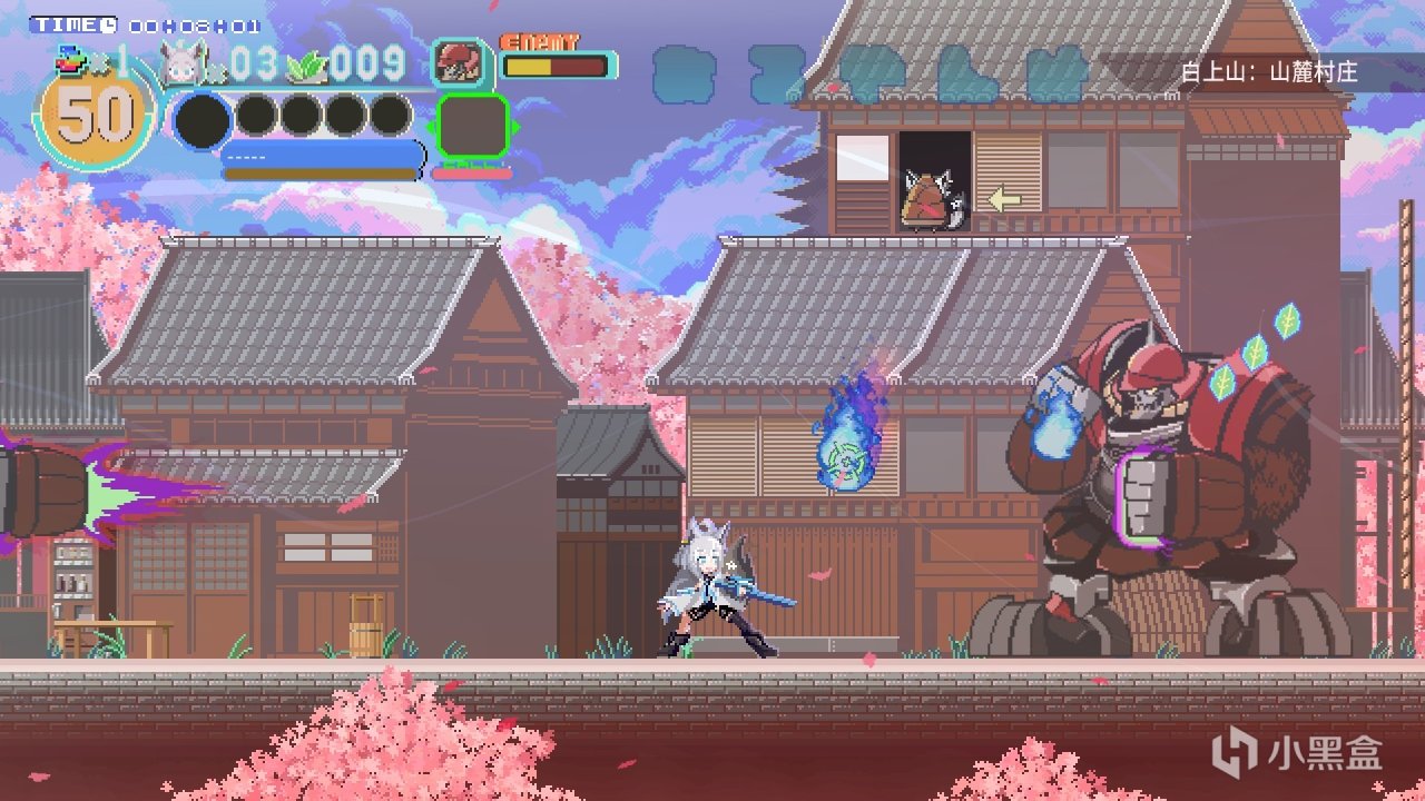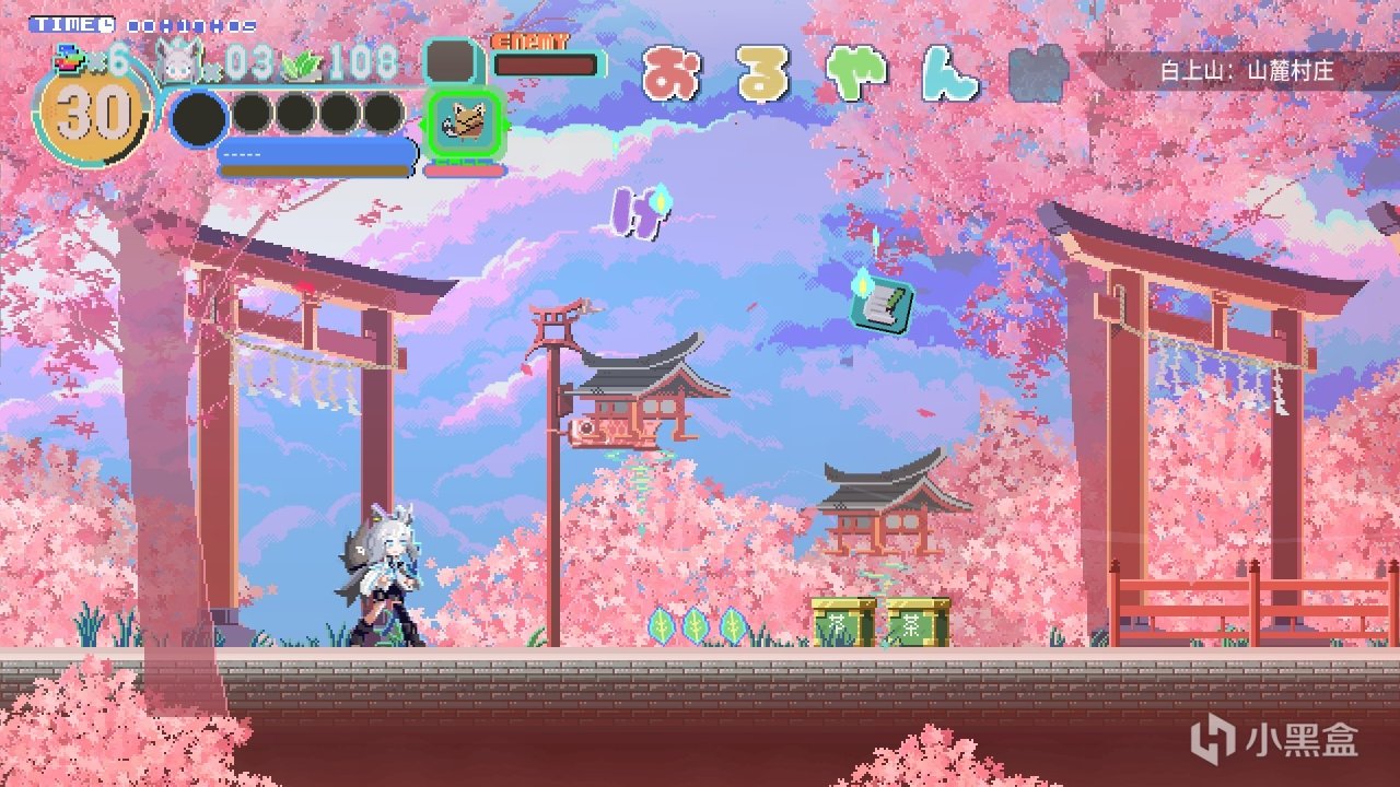 本作是一款像素风横板冒险游戏,游戏用出色的美术绘制出了一个缤纷多彩的和风世界,除了标志性的神社、鸟居、樱花树外,本作还将带领玩家穿越各个场景,试玩demo中开放了神山和魔界赌场两个关卡。