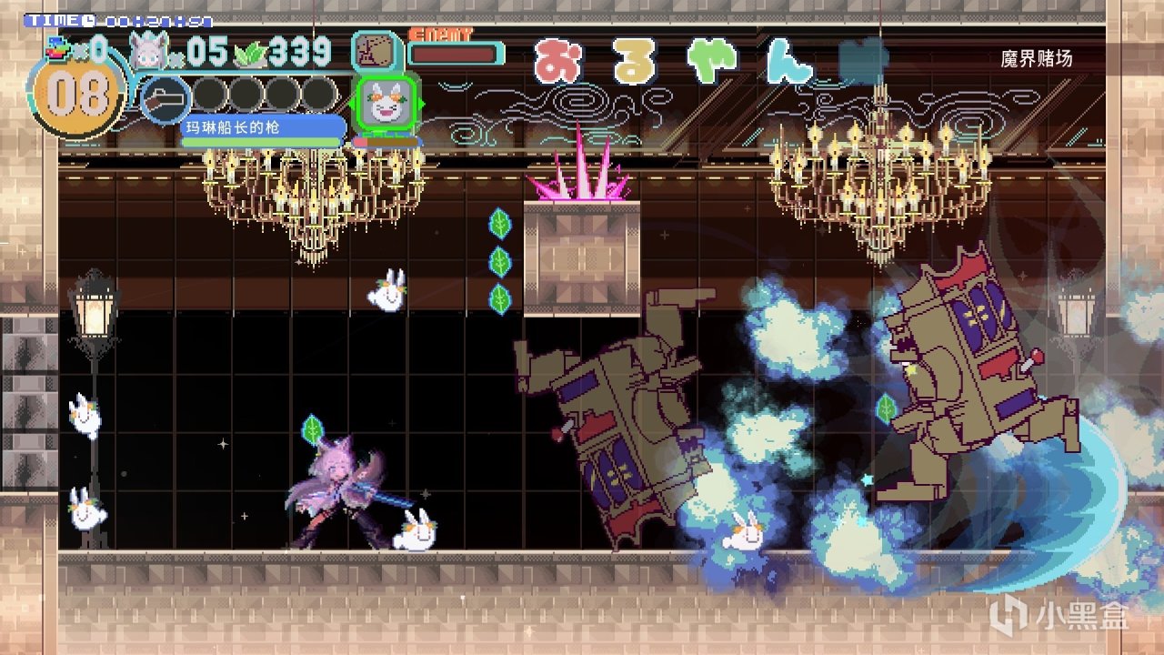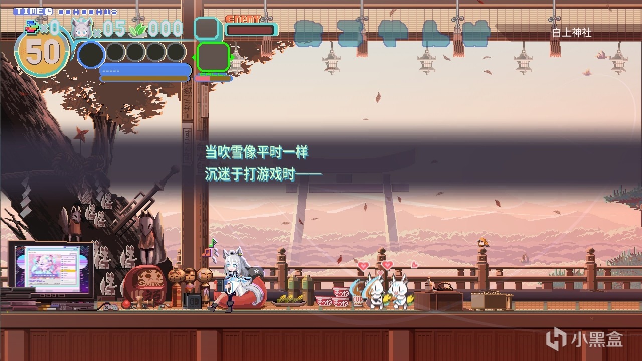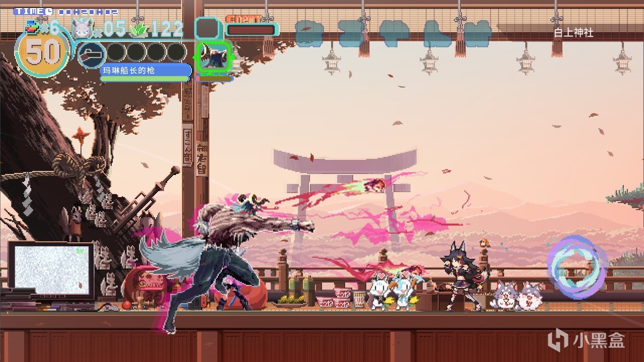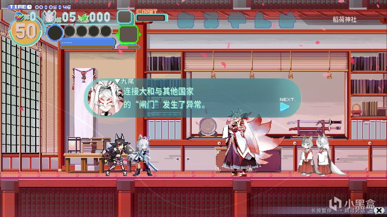 本作是一款像素风横板冒险游戏,游戏用出色的美术绘制出了一个缤纷多彩的和风世界,除了标志性的神社、鸟居、樱花树外,本作还将带领玩家穿越各个场景,试玩demo中开放了神山和魔界赌场两个关卡。