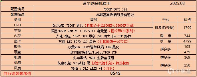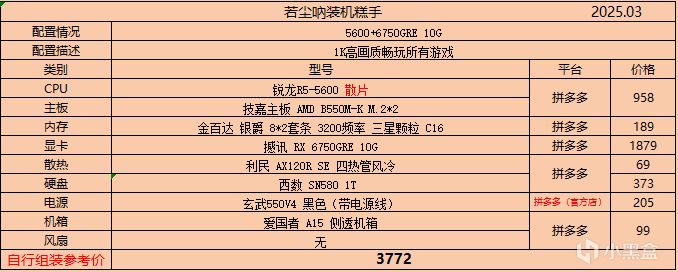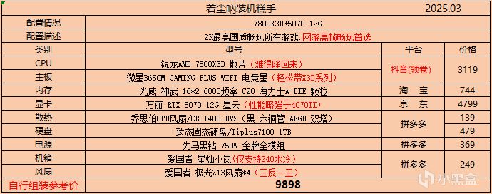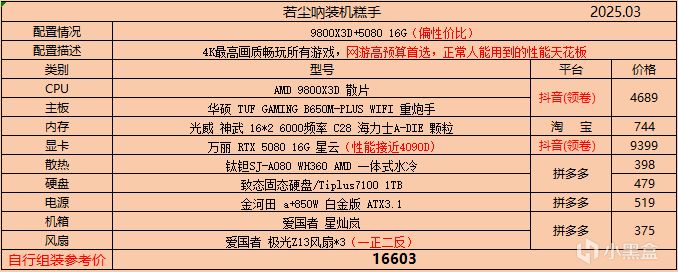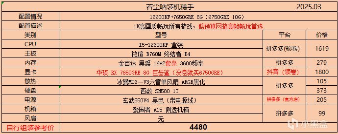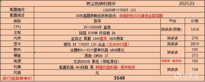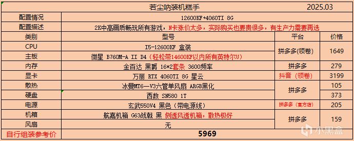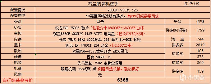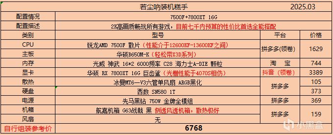 四、6000-7000價位,這個價位也是盒友預算相對集中的價位,同時也是性價比搭配最爲集中的區間,本次爲大家帶來二種不同搭配,供盒友挑選合適自己需求的配置: