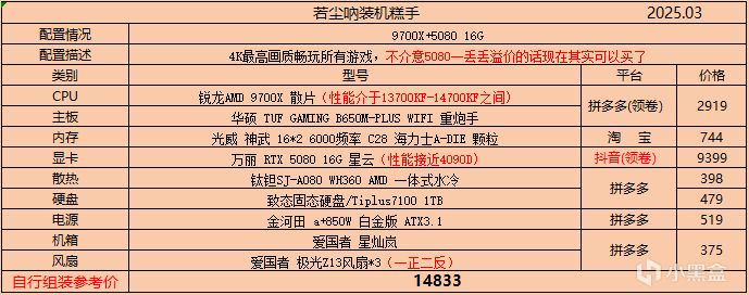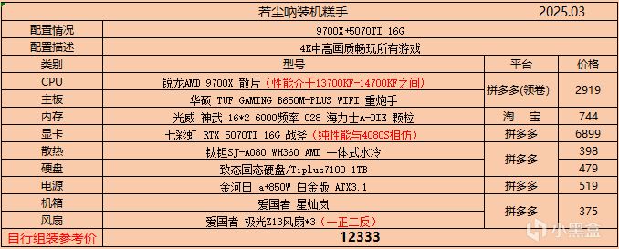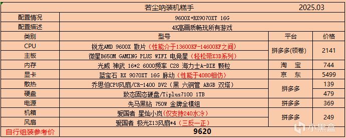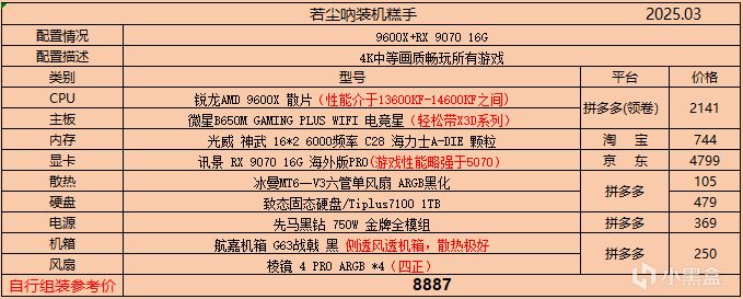 然後就是A卡這邊,這回A卡真是性價比首選了,八千以內預算,A卡獨佔鰲頭,本月新出的9070、9070XT我也進行了推薦,不過介於其價格和性能不是特別匹配,有意願的盒友可以稍等一段時間,A卡降價屬於老套路了。