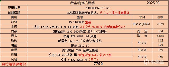 其他的,固態、主板、散熱、機箱、風扇等仍舊價格穩定,無需在意。