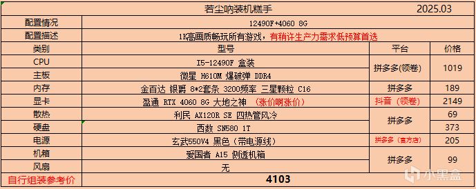 一、四千以內價位,該價位也是我個人認爲的能在最低預算內買到全新配件爽玩各種遊戲的主機搭配,爲大家帶來五種配置推薦: