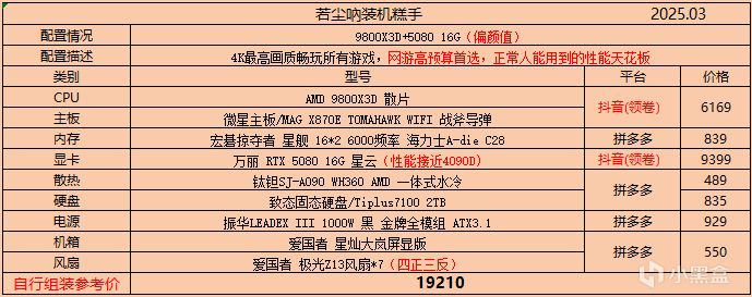 七、9000-10000價位,這個價位,目前也是簡單的對上一個價位進行補充,同時更新新顯卡搭配推薦: